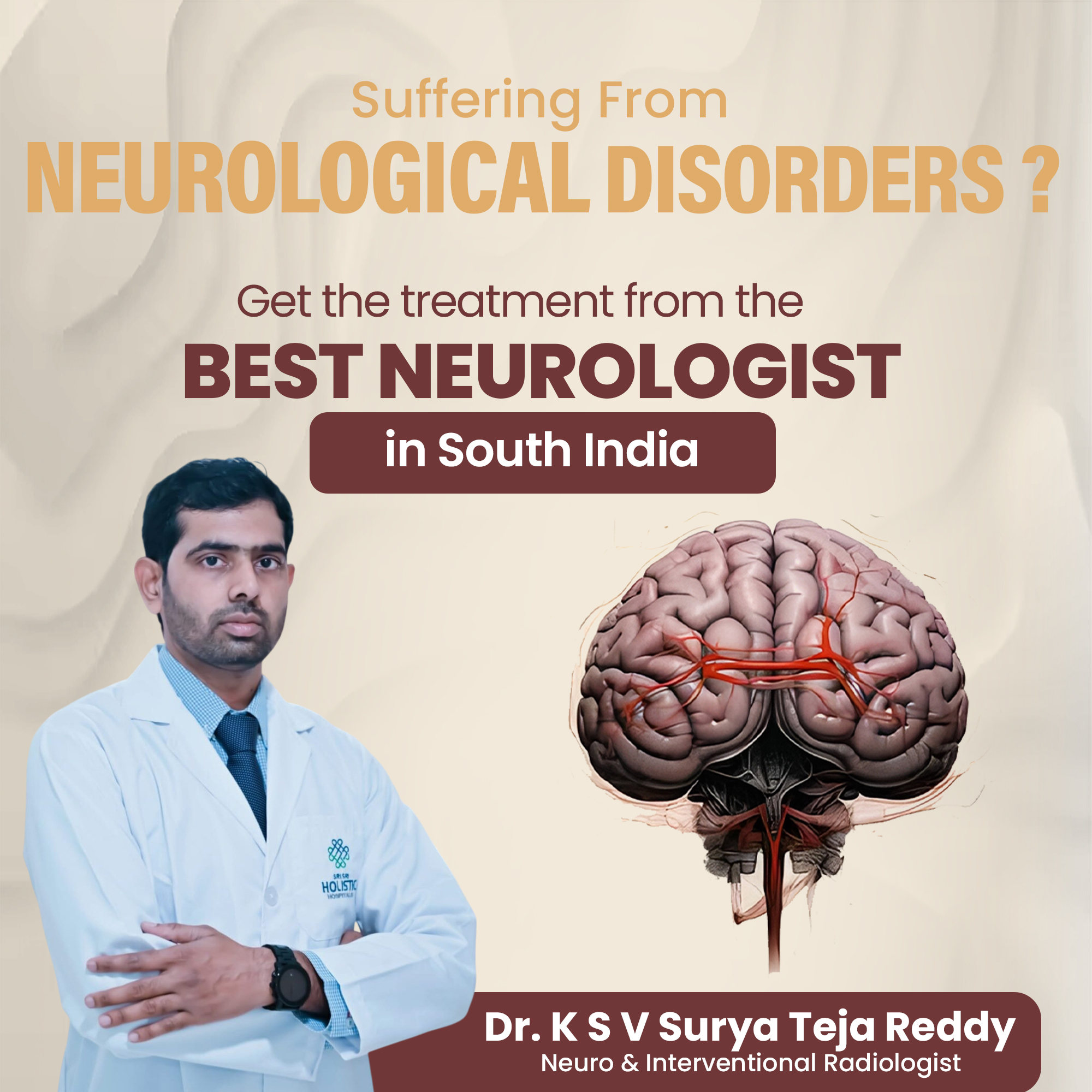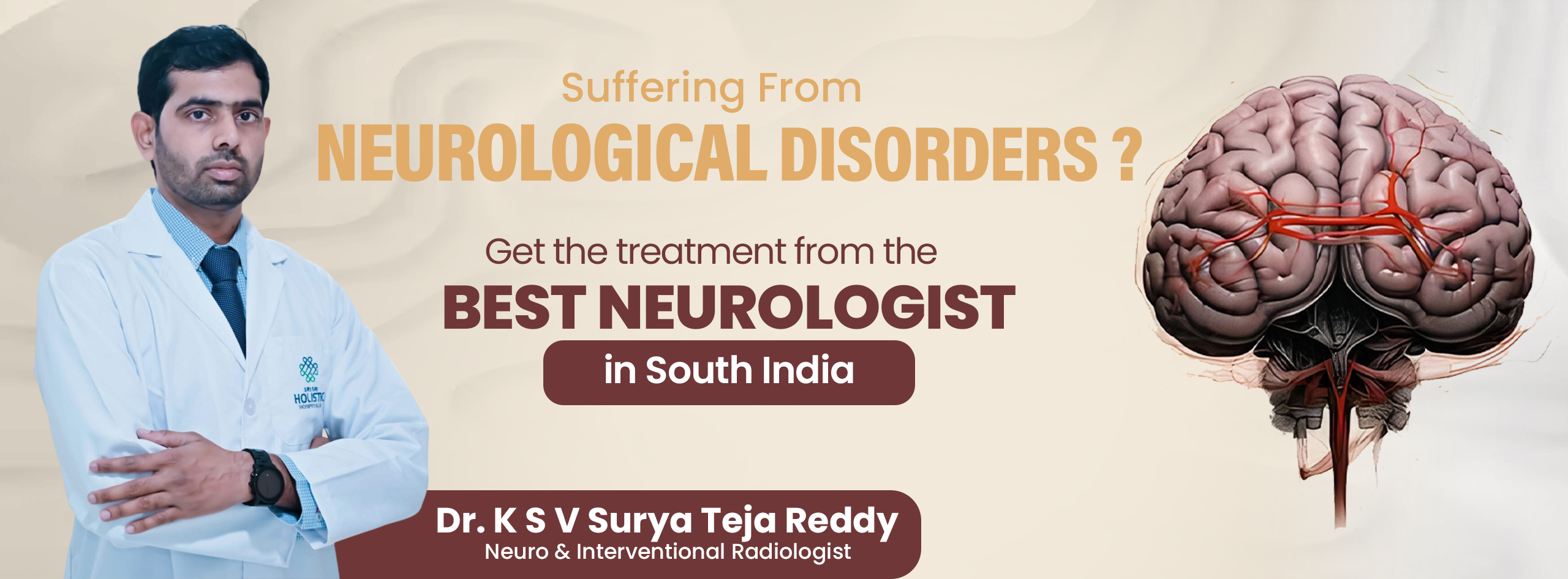 Dr. K. S. V. Surya Teja Reddy, MBBS, MD, DM, is a leading Consultant Neuro & Interventional Radiologist at Sri Sri Holistic Hospitals, Kondapur. Specialising in neurovascular interventions, stroke management, aneurysm treatments, and advanced minimally invasive procedures, he is committed to accurate diagnosis and personalised care. He specialises in advanced neurovascular, organ-specific, and non-vascular procedures, including thrombectomy, aneurysm coiling, stenting, and embolisation. With a patient-first approach, Dr. Reddy ensures optimal outcomes through expertise, innovation, and compassionate service.